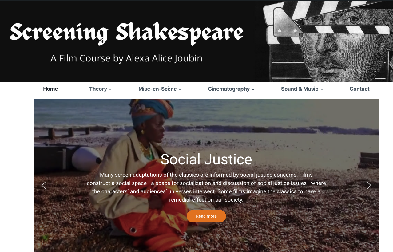 Supported by the George Washington University Adapting Course Materials for Equity Faculty Grant (news story) and the Online Course Development grant, GW Digital Humanities Institute, and GW Coders, Screening Shakespeare is an openly licensed, open-access, online textbook with interactive learning modules.